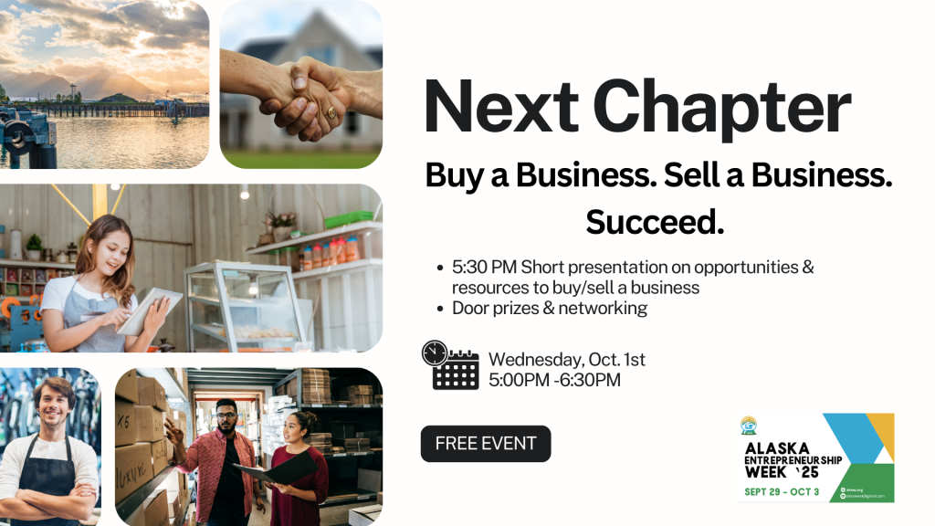 Part of Alaska Entrepreneurship Week (Sept 29 – Oct 3) — brought to you by the Alaska Women’s Business Center & Business Impact NW.