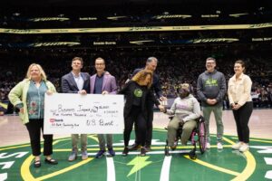 Mattice’s journey with Business Impact NW doesn’t end there. Thanks to Ericka, her neighbor and coach, Mattice is now working more directly with her community. Mattice empowers and supports multiple business owners, shares information about Business Impact NW, and is planning to compete at IMPACT Pitch again. Business Impact NW, impressed by her work, extended an invitation for Mattice to help accept a monetary award from a local bank. Much to her surprise, Mattice was invited onto the court at the Seattle Storm game, to help accept the $500,000 check from U.S. Bank to Business Impact NW, supporting programs and more businesses like Mattice Beauty Supply. Mattice states,